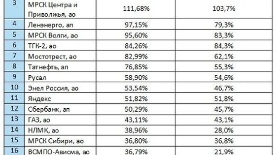 Несмотря на громкие имена и серьезные инвестиционные программы, "голубые фишки" российского рынка не были лидерами по доходности в 2017 году, большая часть этих акций также не показала значительного роста котировок, следует из данных, подготовленных крупнейшими инвестиционными компаниями специально для агентства "Прайм". Оптимизм инвесторов на российском рынке акций, появившийся в конце 2016-начале 2017 года благодаря надеждам на отмену западных санкций, сменился падением индекса Мосбиржи в первой половине года, тем не менее по его итогам многие российские акции показали хороший рост. Согласно брокерским данным, неликвидные акции продемонстрировали наибольшую доходность, которая иногда превосходила 100% и 200%. Среди наиболее ликвидных в лидерах оказались акции энергетических компаний, при этом заметную часть доходности принесли дивиденды за 2016-2017 год: это произошло на фоне увеличения прибыли. Высокий доход = высокий риск Доходность акций – показатель, который определяется как отношение дохода от акций к ее рыночной стоимости. Акции приносят инвестору прибыль двумя способами: за счет увеличения курсовой стоимости и за счет выплат дивидендов. Высокая доходность чаще всего характеризуется высокими рисками. Ценные бумаги первого эшелона не были лидерами по доходности в 2017 году, при этом отдельные неликвидные акции показывали доходность и более 100%, что связано с их высокой волатильностью, отмечает начальник управления операций на российском фондовом рынке ИК "Фридом Финанс" Георгий Ващенко. Самые высокие доходности по итогам 2017 года продемонстрировали акции из второго и третьего эшелонов, отметил аналитик ГК "Финам" Сергей Дроздов. Так, например, акции горнодобывающего предприятия "Тучковский комбинат строительных материалов" (ТКСМ) показали доходность в 280%, акции Бест Эффортс Банка – 222%, акции девелопера "Опин" ("Инград") – 173%, привилегированные акции "Красного Октября" – 169%. Данный рост не обоснован фундаментальными факторами и является спекулятивным, повысить цену таких активов очень просто для инвесторов с большим торговым депозитом, замечает замдиректора аналитического департамента "Альпари" Анна Кокорева. "Тем не менее акции ТКСМ, вероятно, выросли на фоне модернизации производства и увеличения производственных мощностей, что существенно повлияет на финансовые показатели компании", - говорит она. Также, по ее словам, стоит выделить акции судоходной компании "Дальневосточное морское пароходство", которые подорожали на 118,4% за счет роста грузооборота и запуска новых маршрутов между Россией и Китаем. Ликвидные акции и надежды на энергетиков Если же отбросить в сторону высокие риски и спекулятивный фактор и не обращать внимания на неликвид, то доходность по акциям складывается иным образом, поясняют аналитики брокерских домов. На первый план в 2017 году выходят энергетические компании. Среди же гигантов российского рынка больше всего инвесторов порадовали "Татнефть", "Русал", Сбербанк и "Яндекс". Топ-20* акций российских компаний по доходности за 2017 год *Топ-20 составлен по данным брокерских компаний БКС, "Финам", "Фридом Финанс", "Альпари", "Регион". Рейтинг составлен с учетом ликвидности акций и объема их торгов на Мосбирже. В рейтинг также включены акции компаний, которые не выплачивают дивиденды. Эксперт "БКС Экспресс" Игорь
