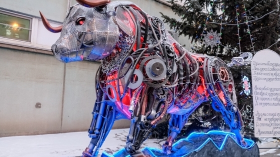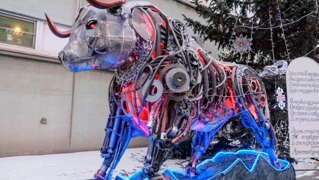 Сотрудники завода в Волжском создали к Новому году металлического быка