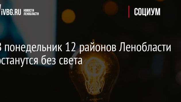 В понедельник 12 районов Ленобласти останутся без света