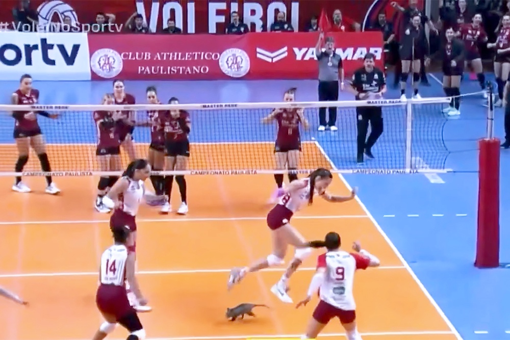Опоссум напугал волейболисток во время матча в Бразилии