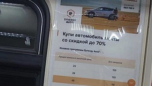 В вагонах казанского метро стала появляться реклама компании Synergy Group, предлагающая "купить автомобиль мечты со скидкой до 70%". Речь, впрочем, идет не об акции у автодилера, а о рекламе "инвестиционного продукта", который предлагает вложить часть средств в надежде получить гораздо больше — те самые "до 70%".