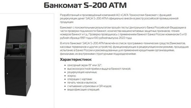 Российский производитель и вендор высокотехнологичного оборудования и ИТ-решений в области систем самообслуживания компания «САГА Технологии» сообщает о реализации проекта с одним из лидеров российского розничного банковского рынка – банком ВТБ. В марте специалисты банка завершили тестовые испытания ATM модели SAGA S-200 с функцией cash-ресайклинга, произведенного отечественным вендором. Они показали, что банкоматы «САГА Технологии» по ряду значимых параметров не уступают оборудованию популярных некогда в РФ вендоров NCR и Diebold Nixdorf, с началом санкционного давления покинувших российский рынок и переставших поддерживать уже инсталлированные и работающие в сетях российских банков устройства. В частности, ATM SAGA полностью адаптированы к работе с банкнотами ЦБ РФ нового образца, и при компактном размере и весе наделены повышенными антивандальной защитой и устойчивостью к несанкционированному вскрытию (взлому).