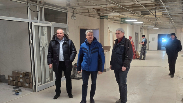 В здании подрядчик завершает монтаж электрооборудования, системы вентиляции и противопожарной сигнализации. Параллельно рабочие ведут фасадные работы и внутреннюю отделку.
