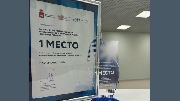 Эта премия вручается за значительный вклад в развитие экспортной деятельности, расширение географии поставок и укрепление позиций российского бизнеса на международных рынках. Ключевые направления экспорта продукции производителя калийных удобрений - Китай, Индия, страны Латинской Америки и Юго-Восточной Азии. В 2024 году пермское предприятие существенно увеличило объем экспортных поставок хлористого калия - до десяти миллионов тонн, или более чем на 30 процентов по сравнению с предыдущим годом. Доля экспорта в общем объеме продаж крупнейшей горнодобывающей компании Прикамья составила 78 процентов.