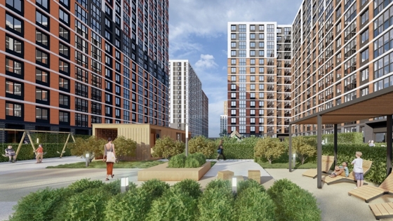 Проектом предусмотрены дворы-патио с эксклюзивными детскими и спортивными площадками, школы и детские сады, общественные пространства, благоустроенная набережная.