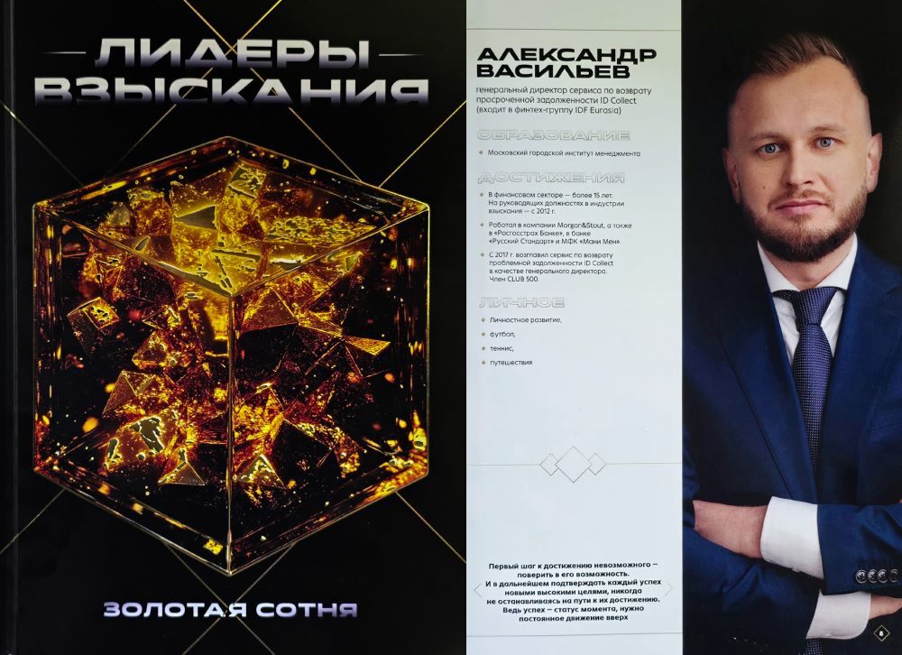 Генеральный директор сервиса по возврату просроченной задолженности ID Collect (входит в финтех-группу IDF Eurasia) Александр Васильев вошел в «золотую сотню» лидеров взыскания. Проект, реализованный продюсерским агентством Анны Львовой, был презентован на организованном АБК форуме «Лидеры цифрового развития» 18 сентября в Сочи.