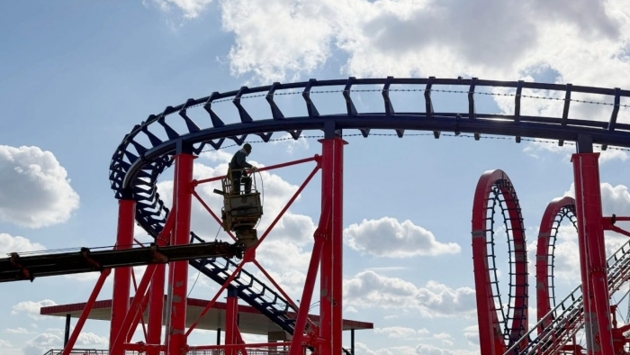 В волгоградском ЦПКиО приступили к покраске швов аттракциона «Русские горки»