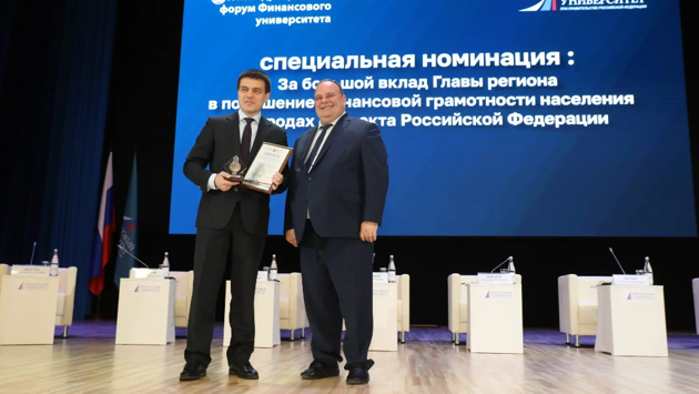 В рамках Х Международного форума Финансового университета Михаилу Котюкову вручили премию в специальной номинации "За большой вклад главы региона в повышение финансовой грамотности населения в городах субъекта Российской Федерации".