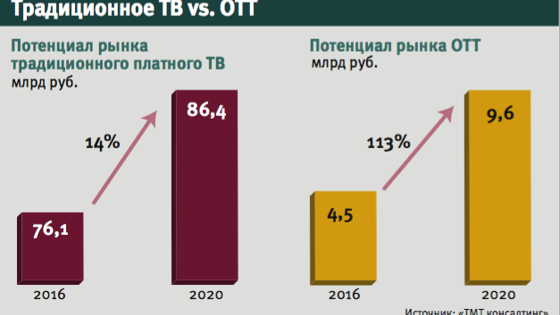 Константин Анкилов, модератор, управляющий партнер «ТМТ консалтинга»: Наша сессия называется «Платное ТВ все еще вечный двигатель?». Наша задача – определить, куда мы придем в ближайшей пятилетке, где будут абоненты и самое главное – где будут находиться деньги на этом рынке. «ТМТ консалтинг» занимается анализом рынка, в частности рынка телевидения. Два слова о сегодняшней точке противостояния (и существует ли оно?), а может быть, наоборот, взаимного дополнения традиционного видео и платного ТВ. Мировая ситуация всем хорошо знакома. Традиционное телевидение начинает отмирать, и это проявляется в том, что в отдельных странах, США, Евросоюзе, абоненты перестают пользоваться кабельным телевидением, уходят в онлайн-форматы. Пока это небольшой спад: в случае США – 2%, в Евросоюзе – 1%. Но тренд скорее всего будет только нарастать. В России мы видим хорошую динамику доходов, но она была связана с единоразовым повышением тарифа, обусловленным экономическим кризисом. Его эхо наблюдалось и в 2016 г., мы переходим фактически к флэту. У нас 2% роста. Если поправить на инфляцию, картина не так чтобы грустная, но возможностей для денежного роста в платном телевидении мы не видим. С точки зрения [количества] абонентов рынок в ближайшие пять лет будет стагнировать, он прирастет всего на несколько миллионов человек. Происходит, как и во всем мире, отказ от аналогового кабельного телевидения. Самым динамичным сегментом, если посмотреть по последнему году, было цифровое ТВ, но наполовину это был перевод абонентов из аналоговых в цифровые. Продолжает расти IPTV. Здесь два тренда. Первый – когда есть один крупнейший игрок, осваивающий территории, до которых другим операторам просто экономически нецелесообразно дотягиваться, за исключением спутниковых. Второй – перевод на платное телевидение, включение IPTV в пакет своих услуг практически всеми операторами широкополосного доступа. Из сравнения этих двух рынков – традиционного телевидения и ОТТ – следуют два простых вывода. Первый за пять лет прирастет всего на 14%, второй удвоится. Но даже через пять лет ОТТ-игроки будут зарабатывать на порядок меньше, чем игроки традиционного платного телевидения. Я бы попросил охарактеризовать, что произошло в 2016 г. и происходит сейчас с вашим бизнесом в плане адаптации к меняющейся реальности. Елена Бальмонт, генеральный директор Viacom International Media Networks в России, на Украине, в странах СНГ и Балтии: Отвечу на этот вопрос как контентообладатель. Для нас год был очень непростым, как и для всех операторов. Проблемы, связанные с национальной валютой, в 2016 г. ощущались не меньше, чем в 2015-м. В прошлом году мы привели на рынок новые продукты, PlayPlex (пакет мобильных приложений, позволяющий дистрибуторам предлагать пользователям смартфонов и планшетов доступ к контенту от всех международных телевизионных брендов компании в любое время в любом месте. – «Ведомости»). В этом году 15 марта состоялся старт нашего нового телеканала Spike. Мы продолжаем верить в силу западного контента. Российский зритель привык к качественному контенту и хочет свободы выбора. Сейчас на пике тренд смотрения сериалов. Spike полностью базируется на сериальной и киносериальной библиотеке. Мы заключили договоры с большинством крупнейших операторов, сейчас ждем результатов измерений. Кирилл Махновский, генерал