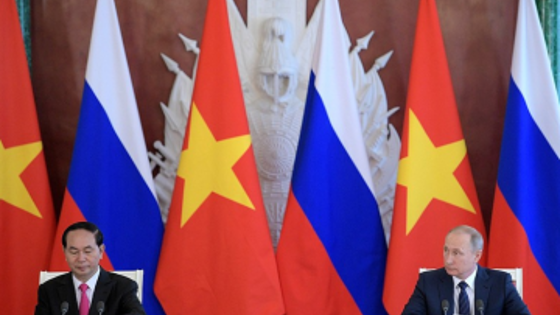 Сегодня, 29 июня 2017 года, Владимир Путин принял в Кремле Президента Социалистической Республики Вьетнам Чан Дай Куанга, посетившего Россию с официальным визитом. В рамках встречи обсуждались возможности дальнейшего углубления стратегического партнёрства между странами. В частности, речь шла о расширении сотрудничества в торгово-экономической и инвестиционной сферах, а также практической реализации соглашения о свободной торговле между государствами – членами Евразийского экономического союза и Вьетнамом. В переговорах принял участие Министр промышленности и торговли Денис Мантуров. В ходе встречи Владимир Путин напомнил, что в 2019 году исполняется 25‑лет с момента заключения основополагающего договора о дружбе между странами. По итогам переговоров главами Государств достигнута договоренность о проведении в 2019 году перекрестного Года России во Вьетнаме и Года Вьетнама в России с организацией на территориях двух стран широкого спектра мероприятий, направленных на поддержку взаимодействия в торгово-экономической, научно-технологической, культурно-образовательной и других сферах. Говоря о торгово-экономических отношениях с Вьетнамом, российский лидер отметил, что за первые четыре месяца 2017 года объёмы встречных товарных потоков выросли на 16,5%. По его словам, видимый рост обусловлен вступившим в силу в 2016 году Соглашением о свободной торговле между Вьетнамом и Евразийским экономическим союзом. «Вьетнамские производители первыми получили привилегированный доступ на рынок России и других стран ЕАЭС. Растут и взаимные инвестиции. Российские во вьетнамскую экономику составляют два миллиарда долларов, а вьетнамские в российскую – два с половиной миллиарда долларов», - поделился Владимир Путин. Он особо подчеркнул, что на данный момент согласовано более 20 крупных совместных инвестпрограмм на сумму около 10 миллиардов долларов: российско-вьетнамский инвестфонд планирует вложить до 500 миллионов долларов в перспективные несырьевые проекты в области фармакологии и сельского хозяйства. В рамках встречи также обсуждались вопросы кооперации в транспортном машиностроении, в том числе проекты по сборке во Вьетнаме российских автомобилей «ГАЗ», «КАМАЗ», «УАЗ». Кроме того, Владимир Путин озвучил, что компании «Мосметрострой» и «Российские железные дороги» готовы подключиться к строительству метрополитена в Ханое и Хошимине, а также к модернизации вьетнамской железнодорожной сети. Президент Вьетнама Чан Дай Куанг поблагодарил главу государства за конструктивный диалог и выразил уверенность в том, что эффективная реализации Соглашения о зоне свободной торговли между Вьетнамом и ЕАЭС создаст прорыв в торгово-экономическом и инвестиционном сотрудничестве между Вьетнамом и Россией. «Таким образом, мы сможем достичь товарооборота в 10 миллиардов долларов в 2020 году», - сказал он. По итогам переговоров был подписан ряд документов, в частности: Регламент деятельности Российско-Вьетнамской Рабочей группы высокого уровня по приоритетным инвестиционным проектам Соглашение о сотрудничестве между Фондом «Росконгресс» и Торгово-промышленной палатой Вьетнама