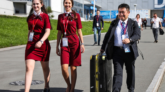 После выхода из зоны прилетов всех гостей уже встречают специально подготовленные волонтеры, помогающие сориентироваться, заказать такси, получить аккредитацию. Как рассказала ТАСС одна из волонтеров, главным требованием при отборе желающих поработать на ВЭФ было владение иностранными языками.