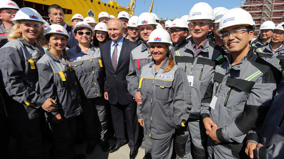 Президент также проконтролировал, как идет реализация перспективных производственных проектов на судостроительном комплексе "Звезда". Глава компании "Роснефть" познакомил Путина с презентацией, на которой были представлены перспективные и реализующиеся в данный момент проекты по строительству судов.