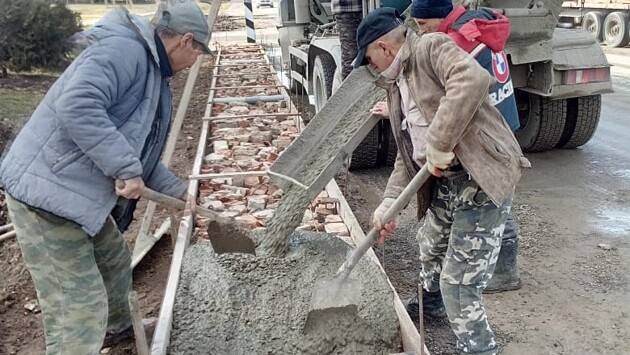 В селе под Анапой общественники за свой счёт строят тротуар