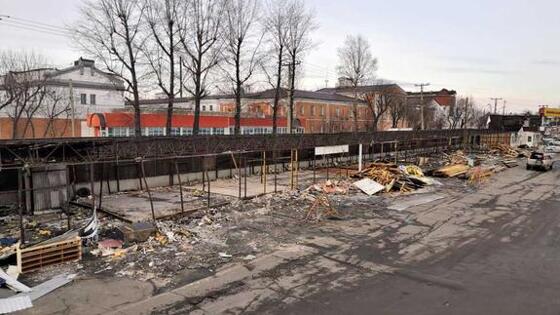 Бригады рабочих начали демонтаж части торговых строений рынка «Знаменский»