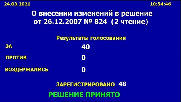 В итоге в первом чтении новую редакцию поддержали 43 депутата, против 5 (из 48 присутствовавших). Во втором чтении 40 депутатов высказались за принятие Генплана, а 8 не стали голосовать.