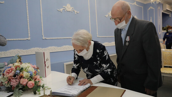 В торжественной обстановке, в кругу родных и близких, Виктор Михайлович и Александра Васильевна оставили свои подписи в Книге почетных юбиляров в Заречном Доме бракосочетания.