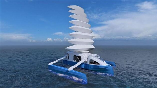 В круизном варианте судно рассчитано на пять человек, в походном – на восемь, имеются четыре спальных места, камбуз, туалет и душ. Его длина – 9 метров, ширина – 8, скорость – 8 узлов в час, водоизмещение – 7,5 м, предусмотрен двигатель марки «Ямаха» мощностью 115 л. с. Тримаран спроектирован и планируется к производству в двух базовых модификациях: с полностью автоматическим парусным вооружением на основе жесткого паруса и классическим парусом. Заказчик на него уже есть.