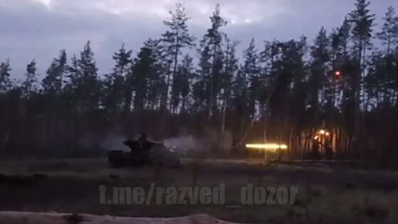 На кадрах запечатлено, как в сумерках машина выезжает на место ведения огня по дороге, проложенной в лесу, и открывает огонь трассирующими боеприпасами из автопушки по противнику, находящемуся за деревьями.