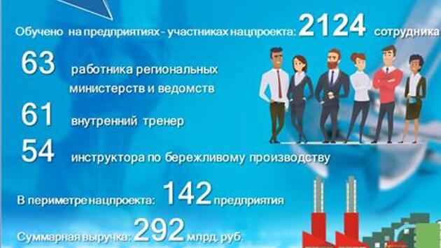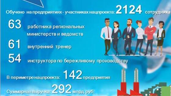 Пилотные проекты по повышению производительности труда завершены на 28 предприятиях. В частности, время протекания рабочего процесса сокращено в среднем на 51%, а запасы незавершенного производства уменьшены на 48%.