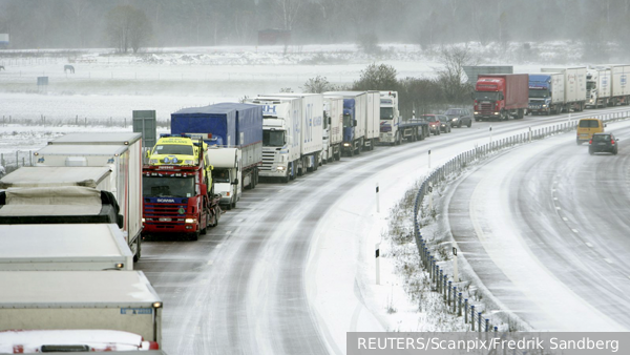 За 11 месяцев прошлого года грузовые автомобили перевезли между Россией и ЕС 4,8 млн тонн на 35,3 млрд евро. По железной дороге было перевезено примерно столько же груза – 4,9 млн тонн на сумму в 3,3 млрд евро.