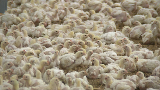 Каждый птичник рассчитан на 18-20 тысяч цыплят. На старте они занимают лишь треть пространства. Но через 10 дней увеличиваются в размерах в несколько раз и занимают весь объем. Вес каждого на третьей неделе должен составлять от 800 граммов до килограмма. Для контроля за птицей достаточно одного оператора.