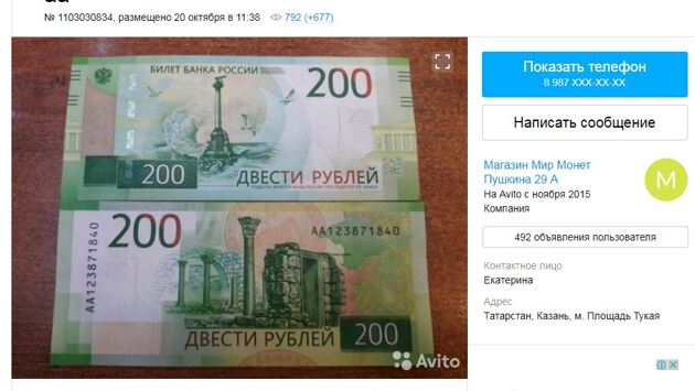 Купюры 200 рублей продают по 300 рублей в интернете