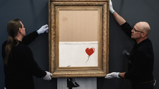 Настоящее имя и происхождение Бэнкси неизвестны, но его работы крайне высоко оцениваются на аукционах. Став известным благодаря уличным сатирическим граффити, он сумел монетизировать свой стиль творчества уже в прикладных работах, которые можно разместить в частных коллекциях или на лучших выставках мира. В своё время даже деанонимизация автора была выставлена на аукцион. Если его «Рабский труд», созданный на празднование 60-летия Елизаветы II, был продан за 750 тысяч евро, то «Девочка с воздушным шаром» на днях ушла уже за 25 миллионов.