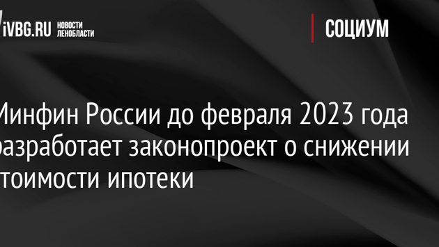 Минфин России до февраля 2023 года разработает законопроект о снижении стоимости ипотеки