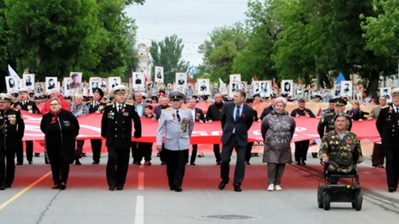 С фронтовыми наградами героев, именами на листах бумаги и просто с портретами без штендеров, в строю «Бессмертного полка» прошлись несколько тысяч астраханцев. Колонна растянулась почти на три километра. Во главе колонны – ветераны боевых действий, участники локальных войн, пронесшие копию Знамени Победы, а также губернатор Астраханской области Игорь Бабушкин. Он нёс портрет своего деда – Василия Михайловича Бабушкина. За шествием с трибун, не скрывая волнения, наблюдали те, кто подарил нам эту Победу.