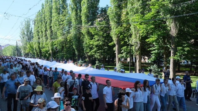 В Волгограде 130 волонтеров пронесли 60-метровый флаг России