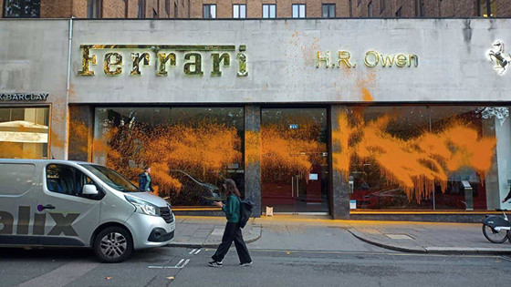 Но в повестку мировых СМИ они попали не за это. С начала октября организация провела целую серию акций, направленных на привлечение именно медийного внимания. Сначала активисты плеснули супом из консервной банки на «Подсолнухи» Ван Гога в Национальной галерее в Лондоне — полотно не пострадало благодаря защитному стеклу. В понедельник кинули торт в лицо восковой фигуры Карла III в Музее мадам Тюссо. А в среду облили краской сразу несколько шоурумов дорогих автомобилей в центре Лондона, от Ferrari до Bugatti. Продолжает корреспондент SkyNews Ханна Томас-Питер: