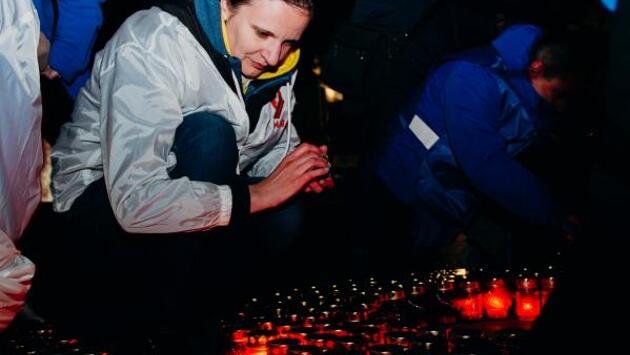 Акция прошла ровно в 0:43 по московскому времени. Минуты были выбраны не случайно: именно в это время был подписан документ о капитуляции Третьего Рейха. Значимое для советского народа, Европы и всего мира событие произошло 78 лет назад. Чтобы почтить память погибших на полях Великой Отечественной войны воинов, волонтеры выложили из двух тысяч свечей слово «Победа». «Акция «Свеча Победы» – это возможность остановиться хотя бы на одну минуту и вспомнить о своих родных и близких, которые доблестно завоевали Победу в 1945 году. Пока мы помним – наши Герои живут», – отметила исполнительный директор движения «Волонтёры Победы» Анастасия Рябова. После торжественного старта акции через громкоговорители было воспроизведено знаменитое обращение диктора Юрия Левитана об окончании Великой Отечественной войны: «Великая Отечественная война, которую вел советский народ против немецко-фашистских захватчиков, победоносно завершена, Германия полностью разгромлена». После старта в Москве акция «Свеча Победы» во многих городах России и за ее пределами. Фото: пресс-служба ВОД «Волонтеры Победы»