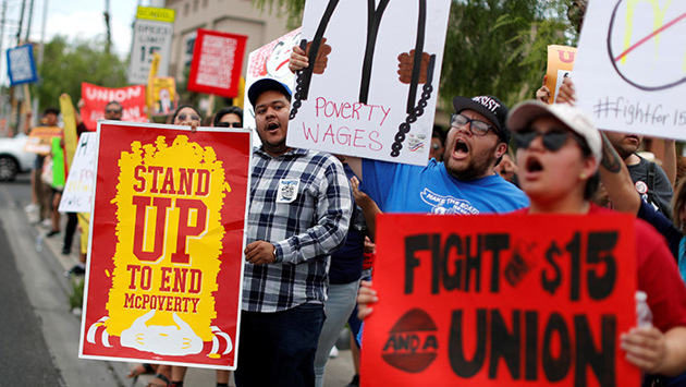 Журнал подробно описывает суть конфликта. Пожалуй, самый известный бренд быстрого питания схлестнулся с, пожалуй, самым известным на сегодня в США движением за трудовые права — «Fight For 15 $» или «Борись за 15 долларов в час». Сторонники организации, львиная доля которых работает в общепите, требуют от Белого дома и отдельных штатов повышения минимальной зарплаты с 7,25 доллара до 15 долларов в час, а также защиты права работников на формирование профсоюзов. Параллельно они устраивают акции: от пикетов и плакатов на парковках у McDonaldʼs до полноценных забастовок сотрудников ресторанов.