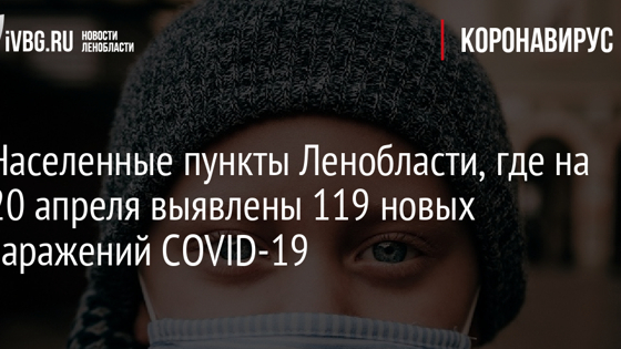 В Ленинградской области за последние сутки COVID-19 подтвердился у 119 человек. Об этом свидетельствуют данные оперативного штаба на 20 апреля. Новые случаи заболевания за сутки не зафиксированы в Лодейнопольском и Тихвинском районах. Управление Роспотребнадзора приводит список населенных пунктов, где выявлены новые зараженные. Бокситогорский район: Пикалёво (+2). Волосовский район: Волосово (+2), Калитино (+1), Красные Череповицы (+1), Ржевка (+1). Волховский район: Волхов (+5), Сясьстрой (+1), Хвалово (+1), Паша (+1), Новая Ладога (+1), Берег (+1), Юшково (+1), Бережки (+1). Всеволожский район: Мурино (+4), Всеволожск (+2), Янино-1 (+1), Новое Девяткино (+1), Суоранда (+1), Скотное (+1). Выборгский район: Выборг (+15), Первомайское (+2), Рощино (+2), Советский (+1), Селезнево (+2), Светогорск (+1), Поляны (+3), Чулково (+1), Семиозерье (+1), Кирпичное (+1), Климово (+1), Усадище (+1). Гатчинский район: Гатчина (+3), Войсковицы (+1), Сиверский (+3), Коммунар (+1). Кингисеппский район: Кингисепп (+2), Усть-Луга (+1), Ивангород (+1). Киришский район: Кириши (+4). Кировский район: Кировск (+1), Шлиссельбург (+1), Путилово (+1), Мга (+1). Ломоносовский район: Низино (+2), Новополье (+1), Новогорелово (+2), Ропша (+1), Малые Горки (+1), Верхняя Колония (+1). Лужский район: Ям-Тесово (+1), Дзержинского (+2). Подпорожский район: Подпорожье (+1). Приозерский район: Приозерск (+4), Саперное (+1), Петровское (+2), Кузнечное (+2), Портовое (+1), Раздолье (+2), Суходолье (+1), Яблоновка (+1). Сланцевский район: Сланцы (+5), Старополье (+1). Тосненский район: Тосно (+3), Тельмана (+1), Ульяновка (+3).