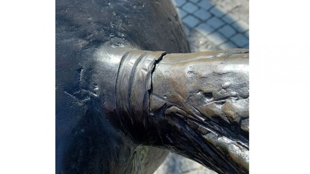 Горожанка прислала фотографии арт-объекта. На них видна большая трещина в основании хвоста «Кентавра».