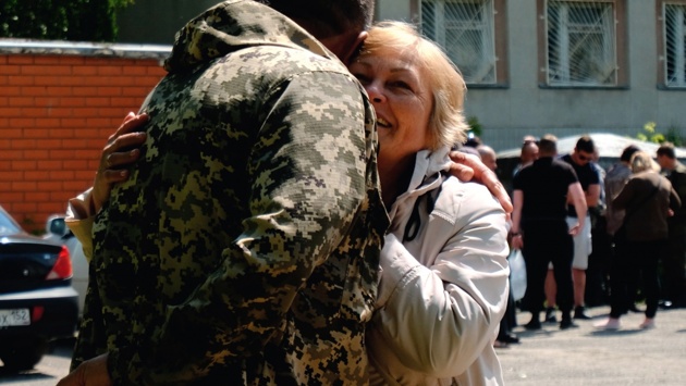 Многих добровольцев провожали жены с детьми.