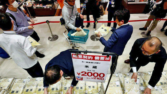 В Японии люди часами стоят в очередях за рисом