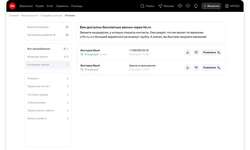 Обновленный функционал звонков уже доступен всем работодателям, зарегистрированным на hh.ru.