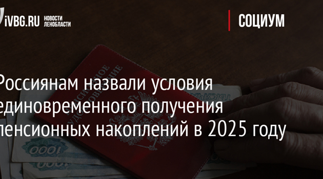 Россиянам назвали условия единовременного получения пенсионных накоплений в 2025 году