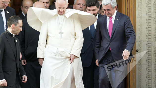 ЕРЕВАН, 27 ноя — Sputnik. В Италии запущены шесть почтовых марок, изображающие сцены из путешествия Папы Римского Франциска по Армении, Мексике, Швеции, Греции, Польше, Грузии и Азербайджане (на одной марке). Об этом сообщает итальянский портал vaccarinews.it Авторами марок, стоимость которых составляет 95 центов, стали художники Ориетта Росси, Габриэлла Титотто, Даниэла Лонго, Даниэла Фуско, Патрисио Даниэль, Сиара Принсипе. На марке с армянской тематикой Папа Франциск изображен со склоненной головой и с цветами в руке на фоне Мемориального комплекса "Цицернакаберд" в Ереване, посвященного жертвам Геноцида армян в Турции в 1915 году. Глава Римско-католической церкви посетил Армению в июне прошлого года. Накануне своего визита Папа сообщил на весь мир: "Еду в Армению совершить паломничество, — и попросил, — молитесь за меня". Его визит был воспринят как духовный, политический, международный, межгосударственный.