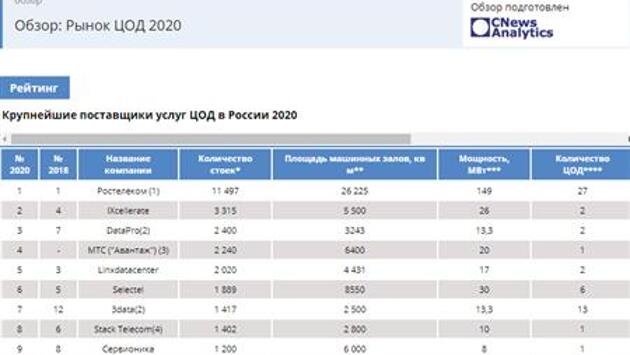 "Ростелеком" лидирует с большим отрывом на российском рынке поставщиков услуг ЦОД по итогам 2019 года