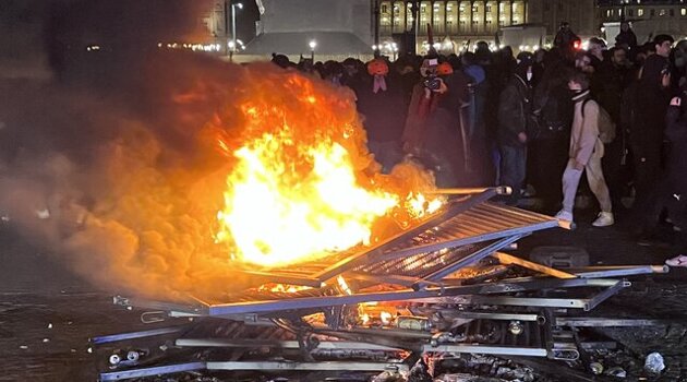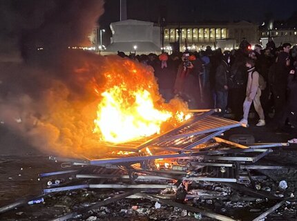 Протестующие начали жечь ограждения и доски на площади Согласия в Париже
