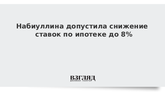 Набиуллина допустила снижение ставок по ипотеке до 8%