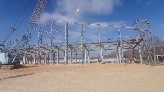 В Волжском устанавливают каркас нового футбольного манежа