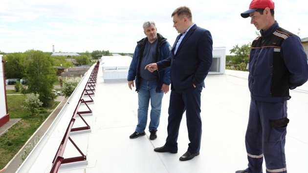 «Сначала произвели демонтаж крыши, поскольку она была некачественно выполнена - не было утепления. Нам пришлось снять весь кровельный пирог, чтобы поставить утеплитель. По результатам вскрытия пришлось исправить еще некоторые недоделки. Керамзит, который был в плохом состоянии, сняли и заменили. Увеличили угол уклона, добавили два слоя пеноплекса, мембрану, колпаки, заграждения. Поменяли все, что нужно», - обрисовал объем работ инженер ООО «Экостроймонтаж» Владимир Леонтьев.