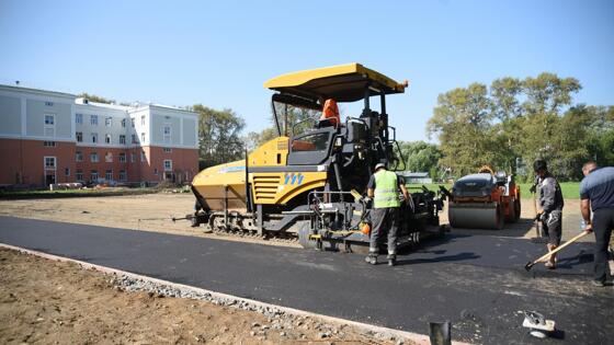«Мы отстаем буквально на два дня от нашего очень жесткого графика. Будем стараться все сдать к 1 сентября. Площадка под ГТО готова полностью, осталось только установить малые архитектурные формы, которые пришли вчера вечером. Освещение также готово на 100%, асфальтирование должны закончить завтра к обеду», - сказал представитель подрядной организации Юрий Лебедев.
