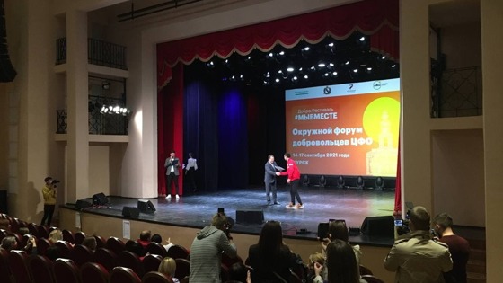 В Курске завершается Окружной форум добровольцев Центрального федерального округа «Добро.Фестиваль #МыВместе». На протяжении трех дней более 300 лидеров добровольческих объединений и руководителей проектов в сфере добровольчества участвовали в полезной, культурно-развлекательной, выставочной программах. Например, участники форума встретились с представителями региональных клубов «#МыВместе», где обсудили программы Ассоциации волонтерских центров, планы развития организации и волонтерского сообщества страны. Вместе с этим они узнали все «секреты» планирования и организации командной работы, научились строить социальные связи. Обсуждались на форуме и вопросы взаимодействия государства, НКО и бизнеса, а на образовательной площадке «Развитие» участникам были предоставлены пути сохранения спокойствия и высокой эффективности в любых ситуациях. Также участники-добровольцы посетили пять выставок от Ассоциации волонтерских центров, Роспатриотцентра, Росатома, Волонтеров-медиков и Волонтеров Победы. Кульминацией форума стало награждение волонтеров Всероссийского голосования за проекты благоустройств. 18 благодарственных писем из рук заместителя министра Минстроя России Максима Егорова сегодня получили представители регионов ЦФО. – Мы удивились, когда по всей России заявилось 32 тысячи волонтёров, готовых помогать в информировании о Всероссийском голосовании за проекты благоустройства. В том числе и благодаря их работе проголосовало более 10 миллионов человек. Для регионов мы подготовили благодарственные письма, их сегодня вручаем представителям регионов, – сказал замминистра Минстроя Максим Егоров. Благодарственное письмо для волонтеров Курской области получала Оксана Чернова.
