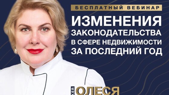 31 августа, с 12.00 до 14.00 по мск состоится авторский вебинар: «Изменения законодательства в сфере недвижимости за последний год». Своими знаниями и советами поделится независимый юрист в области безопасности сделок Олеся Бухтоярова.