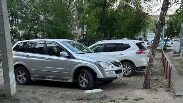 Во дворе многоэтажки Благовещенска водители устроили самовольную парковку